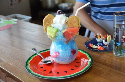 とはご主人の談。どこから攻めるか考えすぎてもたもたしていると、アイスクリームが溶けてしまいますし、果物も支えを失います。果物と言えば、こちらから見えない向こう側には、ドラゴンフルーツも刺さっていました。