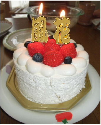 で、おちゃ(け)頂いてたら「ちょっと早いけど、おめでとー」と目の前に置かれたケーキ。ちゃんと年の数字の(本数ではない)ローソク立ってました(笑)
