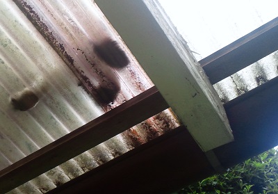 透過性のあるスレートだから、まだそれほど表面温度は高くないのでしょうけれど、ここの下でぷらすBLUEの点検をやっている方は汗だくです。表でやればいいだろうって言われそうですが、庭にはBLUEらすかるとうさにーⅡがありますから、無理。さらにジムニーもいるし。