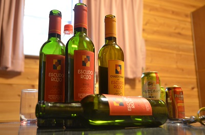 でもって翌朝。12本差し入れられていたエスクード・ロホの赤と白は、3本を残して空っぽに。しかし朝食時のリタイアは1名のみ(しかも呑んでいなかった奴)