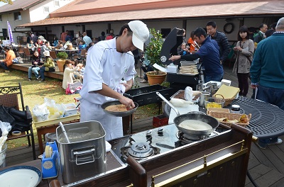 予想外にも初穂の祭りの真っ最中。とはいえさすがに出来たてワインの試飲・・・というのは帰路の途上では無理。樽ころがしレースなんぞはリハビリには過酷すぎるので敬遠。というわけでソーセージステーキだとかガレットだとかアップルパイだとかもぎたてりんごだとかを買い求め、ガーデンテラスでコンサートなんか聴いちゃったりしております。