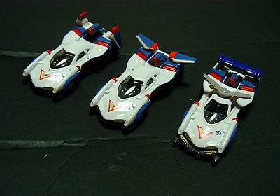という応援心に火が付き、これもまたコンプリートの道を目指したのですが、新世紀GPXサイバーフォーミュラのアスラーダGSXに、量販仕様とは異なるブースト仕様が企画され、あろうことかこの商品は同番組のDVDボックスに付属する初回特典となったのです。いやいやいや、それを手に入れるためにすでにVHSで揃えちまった番組と同じソフトを、32000円のDVDボックスで買うというのは、試合に勝って戦に負けるようなものではないか。と、涙を呑んでコンプリートを断念したのであります(大げさな話だ)