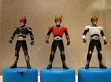 ボトルキャップ20042002年と2004年に我が家で猛威を振るった、炭酸飲料水のおまけとして企画された仮面ライダーのボトルキャップコレクションを「譲ってください」という人が出てきたと、家内から連絡がありまして、集めたほうもバカだったけれど、いまどきそんなものをほしがるば・・・・ば、バリバリのマニアがいらっしゃるとはびっくりです。2002年版で15種類、2004年版で24種類と、もう2系統のコレクターズアイテムに、彩色されていないバージョンと、これをコンプリートするのにえらい目に遭ったものでした。1本のボトルに1個のおまけは、袋詰めの梱包の中に何が入っているかわからないから、当然のように同じものがダブることは必至だったわけです。
