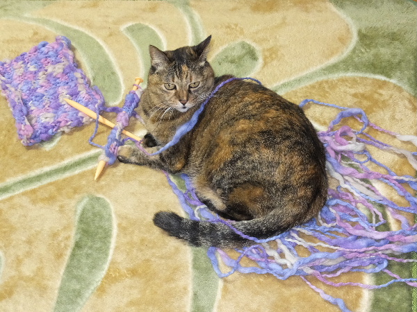 猫は猫。好きだよねー、紐。 編んで解いて毛糸を弄ってたら、まみれるババ一匹。 ちなみに、もう一匹のババは我関せずでグーグー寝てました。