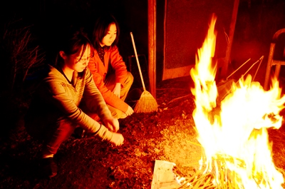 週末、正月の注連飾りを外して燃やした煙をかぶり、風邪を引いたりしないよう無病息災を祈願しました。この注連飾りは屋内外に複数飾ったもので、鏡割りの11日の夜に回収したのですが、屋外の飾りを回収していた霰があわてて勝手口から飛び込んできて