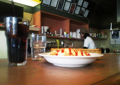 で、この間、カウンターは僕1人。まるでエアポケットに入り込んでしまったようなのんびりの昼飯です。ただし、ふわふわの卵は上手だけれど、チキンライスに関しては、たぶん僕の方がうまく作れるぜ(笑)