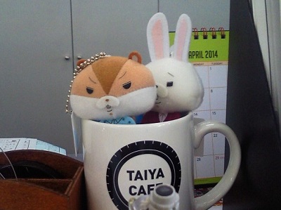 さらに家内がどういうわけかマイブームにしている「紙ウサギな奴ら」がキャンペーンでいたるところにいる。くじを引いたら奴らのプリント皿と、奴らの刻まれたタンブラーが当たるという、朝っぱらから罰当たりに先走っていた家内にしては幸運づくめな、わずか30分の交換作業でした。