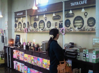 タイヤ館はこのところ、テレビやラジオCMよろしく店内をタイヤカフェに模様替えしています。レジカウンターの棚には全く同じ調度品が並んでいるのが細かい芸で、実際にコーヒーを飲める待ち合いコーナーもある。マスターはいませんがセルフサービスでコーヒーやお茶が飲めるのですが、昆布茶、梅茶、椎茸茶なんてものもあるのは意外です。