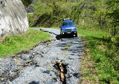 そればかりか、この界隈の林道は岩盤の風化が激しく、なかなか手ごわい。ツーリングマップル上で大船渡へ抜けられると書かれていても、油断してはなりません。森林と林業で日本一を目指している住田町ですが、荒れているルートはとことん荒れています。