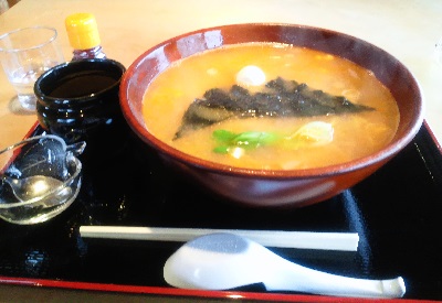 が、あれっと思ったのは、「夜だかの星」(味噌ラーメン)のシンボルでもある青梗菜が載せられている。好みで風味を変えてねと、擦り下ろしニンニクとラー油もついてきている。