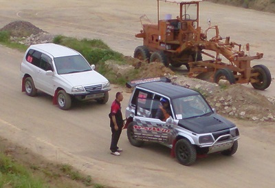 というわけで第2戦は川添選手の連覇。後藤選手は2位で総合得点20ポイントの開きです。3位には廣瀬選手ともう一人、パジェロディーゼルの中村選手が同点でつけています。そういえば、前回紹介したレジントップがどうなったかというと、前後バンパーとトップを外し、黄緑色に塗装されて元気に参戦したものの、コースアウトでドライブシャフトを破損させリタイア。しかし練習走行時間に後藤選手が借り受けて走らせたところ、とんでもない速度で駆け抜けたそうです。