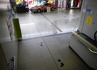福島空港のロビーから階段に向けて、謎の足跡が点々と続いていました。 はてさて国際線に向かったのか国内線なのか、それともお見送りで展望台に行ったのか・・・