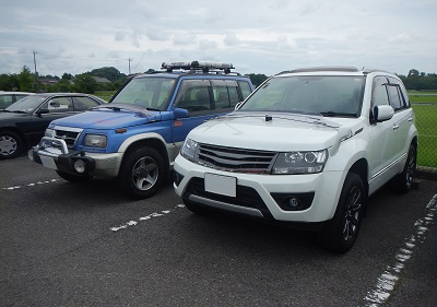 東京オリンピックだって今頃から盛り上げてるわけですから、エスクード誕生30周年のプレイベントだって言ってもいいじゃないですか。ということで、写真のような2台が会合していると、電光石火の悪だくみが行われているのでありました。