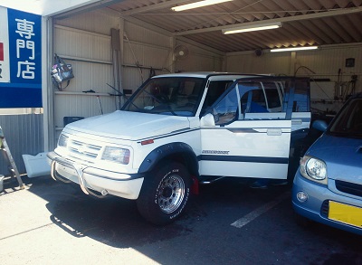 このフェンダーフレアですが、2014年の今どきになって、アメリカの「トレイル・タフ」で新規リリースされた初代用パーツなのです。まあ作る方も作る方だけど、こういうのを見つけてくる方も大したものです。で、これまた僕と和邇さんとの間でしかやりとりしていなかったうえに、フジ・オートでも公にしていなかったこの部品取り付けの話題を、コムロさんが別ルートで発見してくるというのが恐るべしエスクードフリークな展開。