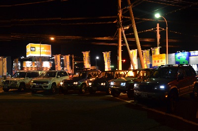 やーもう全車が一堂に会するところはまとめて撮りようがなかったので、挿絵はそういうふうにくっつけちゃったものですが、6台のエスクードが時間替わりで並んでおりました。いつもの石岡夜会の賑わいをいただくことができて、果報者であります。