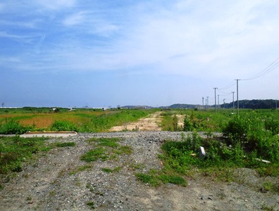 宮城県の南の沿岸を移動していて、道と併行してすぐそばに未舗装のベルト状のゾーンに気がつきました。よくよく眺めてみたら、仙台といわきを結ぶ常磐線の軌道跡でした。