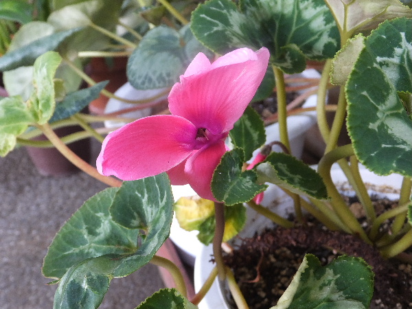 煮え繰り返りそうな暑さの中。室内じゃ鉢が湿気たまんまかと外に出したシクラメンの花が咲いてました・・・