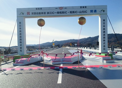 常磐道6日15時、宮城県の山元から福島県の浪江まで、常磐自動車道が開通しまして、その開通式典に招かれ、真っ新の高速道路を走りぞめしました。途中区間の福島県相馬、南相馬間はすでに開通していましたが、これをはさんで浪江まで行けるようになったことは、この界隈の人々にとっては待望の出来事です。