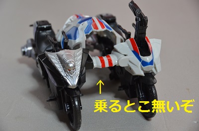背面とりあえず、乗り込んだどちらかは密閉型のコクピットから「クロッサーの正面方向に正対して頭を後ろにして」半分寝そべり状態で操縦するのですが、これは玩具では再現されておりませんでした。