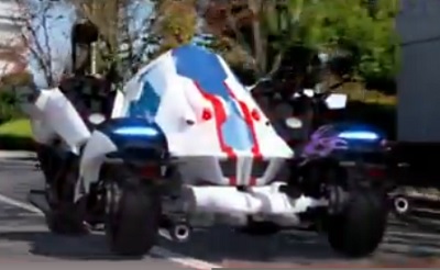 ライドクロッサーオートバイ二台がくっついて車になるというギミックをよーく考えてみると、ツインエンジンてことじゃありませんか。