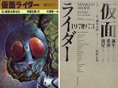 場面描写としてしか書かれていないものの、「仮面ライダーの強化服バリエーション」として、それぞれの戦闘仕様に特化した、どこかで聞いたようなスタイルへとバージョン替えするというアイデアが、この小説の中にあります。3号と4号の仕様は上のものとは異なりますが、これを使うとあと何作かはシリーズが続けられます。ただし、この小説の仮面ライダーは、基本的には本郷猛ただ一人ということになっていますが(最後の最後はそうでもなさそうなんだけど)