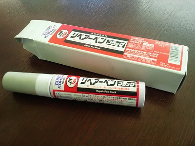 業務用ゆえになかなか高価でしたが樹脂配合のリペアペイント。太書きのマジックインクペンみたいなもので、ワイパー周りにマスキングをしなくて済むのが便利だと、いきなり行程が雑になってます。