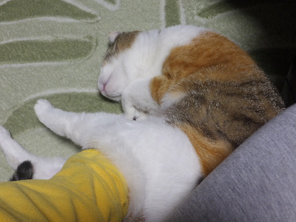 夕飯時。人が座ると「あら、ヒマ?」とばかりに、