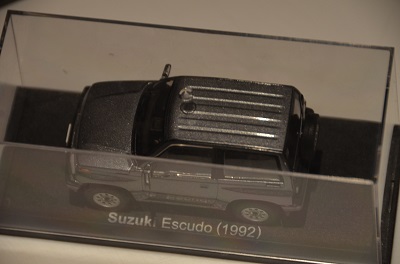 これは初めて見るブランドだけれど、モノは以前に見たことがあると気がつきました。実はこのミニカーの金型、上記ブランド以外に「国産名車コレクション」としてリリースされたスズキエスクードのものが使われていました。そういうことか。国産~の書店販売数がどれくらいだったのかは不明ですが、予約しても大量には買い付けられなかったり「なかなか見つからなくて何軒かまわった」という話を聞いたりしましたから、出荷量はそれほど多くはないと思われます。でも、金型1個一千万円単位の仕事で、そんなに小ロットでは商売にならんだろうと考えていたとおり、金型流用はあったわけです。