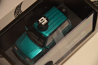 新年会にコムロさんが持ってきた「92年式スズキビターラ」の43分の一スケールミニカーの数々のうち、コムロさん自身もいつ発売されたか知らなかったという(しかししっかりと手に入れているのが彼)、triple9なるブランドの製品でした。これまでネオ、ハイ・ストーリー、プレミアムXと、2013年にリリースされてきたサイドキックやビターラ、エスクードの当たり年には、このようなブランドの製品もあったようです。ところがこれはいずれとも金型が異なり、ぱっと見で屋根やエンジンフードのモールドが塗装の厚みに負けずはっきりしており、Aピラーからノーズ端までの長さが短く見えるほど車幅が広いという特徴が出ています。