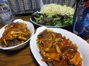 ふっとっ食べたくなって、日曜日の夕飯はハンバーグ。