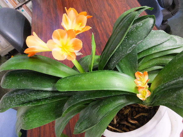 毎年毎年「狭そう」と言ってる君子蘭。 今年も健気に咲きました。 小さい方は、初めての花かな。