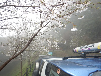 と、日時指定で狼駄さんが告知したのが3月9日。それから約1か月の間に桜前線は東北まで到達しており、花見の前々日には仙台だって開花宣言されていました。当然ですが天狗の森の山麓も満開で、中腹は満開には少し足りないけれど例年に比べたらソメイヨシノの開花は立派なものだったのです。