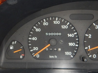 大急ぎで距離計算をすると、壬生のパーキングエリアで53万キロの8キロ手前。壬生インターを通過すると高速上でカウントすることとなり、記録撮影ができません。やむなく壬生インターで高速を降りて残り4キロ。夜な夜な、おもちゃのまちの工業団地内をうろうろする羽目となりましたが、無事に記録写真は撮れました。