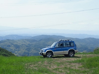 食ったから寝る。とばかりに、レストハウス前とは別のだだっ広い駐車場に移動してしばし昼寝の後、帰り際に眺望の開けたところへ行ってみると、牧草地の土の天地返しはすっかり完了し、一面の緑の絨毯が敷き詰められています(写真じゃ見えない)。牧草地に乗り入れるわけにはいかないので、作業車の転回場所までですが、外気温度計が下がるさがるの19℃。いかん、こんなの実感しちゃったら下山したくなくなると、名残惜しんで水沢に降りたら32℃(うへー)