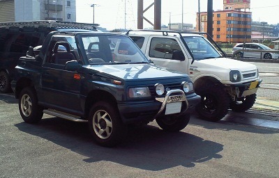 JB23Wは、車体の安全基準について、小型車に準ずる改正を施された軽自動車なだけに、JA時代に比べるといくらか寸法が大きい。うちのぷらすBLUEの車高が上がっていなかったら、ちょっと車高を上げただけで初代のエスクード以上にに堂々とした車体に見えます。