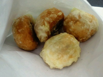 てんぷらまんじゅう先日の津川の帰り道にしようと思いながら、めんどくさがってスルーしてしまった中ノ沢温泉に行くことになったので、小西食堂のあとにはてんぷらまんじゅうを買い求めに立ち寄ります。会津で有名なのは、猪苗代湖の強清水にある元祖清水屋のものですが、中ノ沢でも別の店がやっています。作って数日経た饅頭を日持ちさせて食うための、会津の台所の知恵が天ぷら化なのだそうです。こういう食文化が全国区なのかどうかは知りませんが、香ばしさと甘さの加減が良いのです。