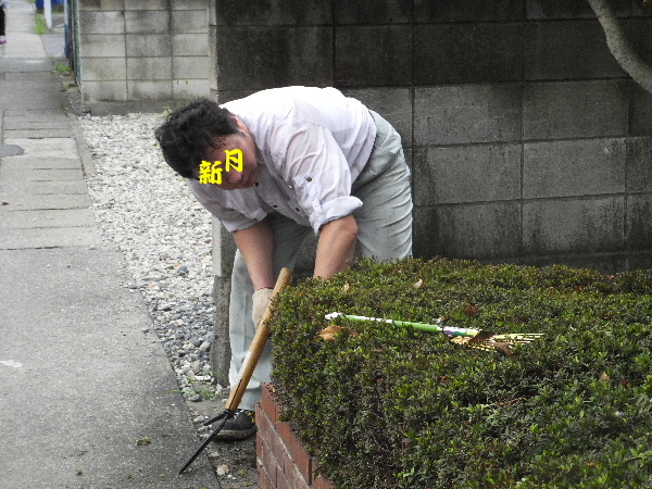 新月サンが刈る傍からかき集めて袋詰め。・・・そうか、こうすれば効率がいいんだ(いつもは刈り終わるまで待って、一気に集めてた)