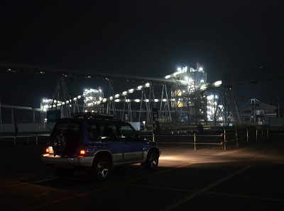 まだ嵩上げ後のビルドアップは一部でしか始まっていないため、街であったここは静寂の夜の闇。コンベアの明かりは寂しさを紛らわせる心遣いなのかもしれません。