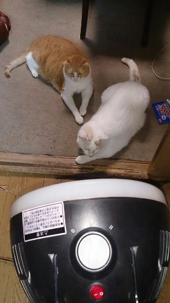サーキュレーターの前に陣取る、義弟1号んちの猫ず。