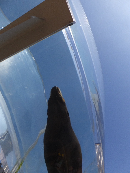 外にある、アシカが下から見られるリング状の水槽。