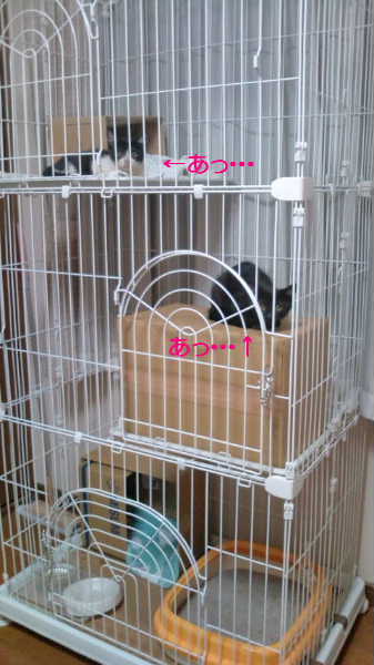 写真の通り、ちびにゃはケージに隔離中。で、ケージの部屋を閉めて