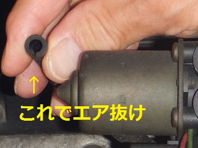 ホース1このような構造はおそらく後期型初代と二代目のエスクードだけなのですが、渡辺代表は給油機先端にゴムホースのアタッチメントを取り付けて作業しています。経験と教訓が活かされているのですね。