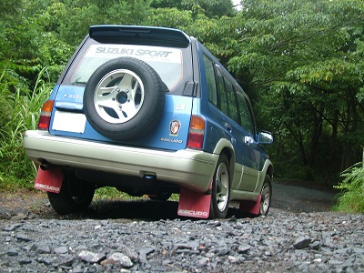td61w0905b何一つバージョンアップしていませんが、初代(ややこしいけどつくばーど採用エスクードの初代)ヘリーハンセンから先代らすかるに移植したドアミラーカバーとリアハッチの我が家専用エンブレムだけは保管していたので、あらかじめ用意していき陸運事務所の駐車場で貼り付けました。この5日後にボンネット上のエアロバグガードが追加されますが、このダックスフントかコーギーか(しかし彼らの足の方がよほど伸び縮みする)と言いたくなるノーマルの足回りは半年ほど続きます。