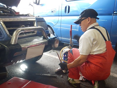 「雷蔵さん、四駆に入らないけど、ホースに亀裂でも入ってないかな?」