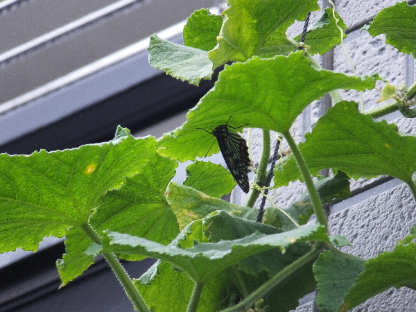 昨日の朝、庭のキュウリで休んでた揚羽蝶。