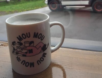 「免許証と眼鏡と運転用の靴で来たにも関わらず、オーダーしたのは慣熟運転のはずの娘。父親はどうにも呑めない無粋な輩でして、ジンジャエールが辛いからい。カウンター席の常連のお客さんたちも、皆でコーヒー飲んでます」