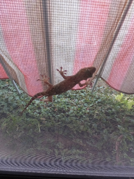 そこじゃエサ(小さい虫)は居ないでしょ、網戸の内側・・・。
