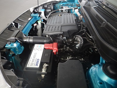 クラッシャブルゾーンをふんだんに備えたとしか言いようのないエンジンルームには、M16Aが横置きで収まっています。やたらとでかいヒューズボックスと、こんなに小さいのか、なバッテリー。ここは島社長も「バッテリーが海外製品です。ここに国産の好きな銘柄や大容量のユニットを自由に載せ替えられないと、いざというとき困りますね」と懸念していましたが、お尋ねしたディーラーでは国産品に載せられるかどうか(固定方式も含め)の知識を持ち合わせていませんでした。それにしてもヒューズ類が初代の倍近くあるよ。