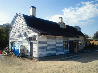 蔵王町のジェーエーシーリサイクルパークを訪ねたら、多少遅れましたがレストラン棟が完成しつつありました。職人さんと打ち合わせしていた真野社長がにこにこしながら