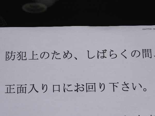 これ貼ってあった場所銀行の裏口ですよ。